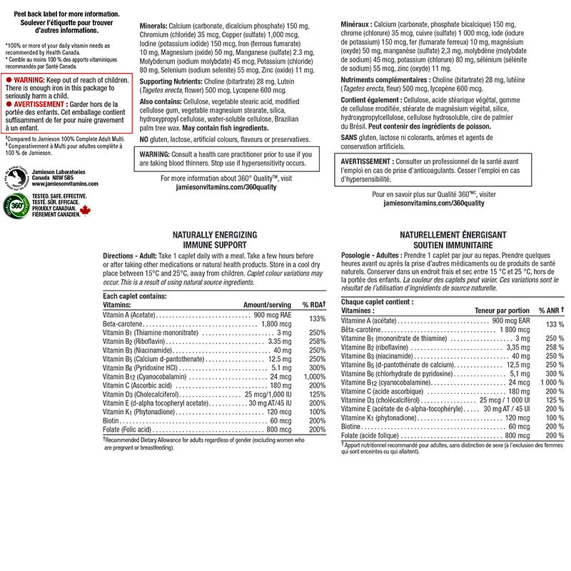 One-per-day formula providing 100% of your daily vitamin needs as recommended by Health Canada