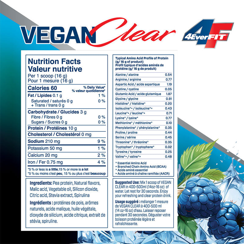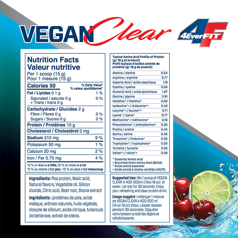 after4EverFit VEGAN CLEAR is for those who are committed to staying Forever Fit! This plant-based protein delivers 10g of smooth, refreshing protein per serving, without the chalky or gritty texture. Ideal for post-workout recovery, it mixes easily with water and tastes like a light, delicious clear juice. Free from gluten, sugar, and common allergens, 4EverFit VEGAN CLEAR is perfect for anyone dedicated to maintaining an active, healthy lifestyle.