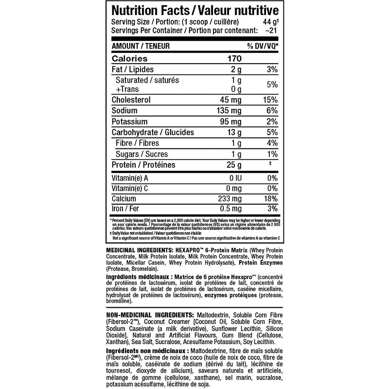 HEXAPRO is a high protein, lean meal solution to this protein timing issue. It’s formulated with 6 superior proteins to continuously feed your muscles with clean, whole protein at a steady, sustained rate. With its thick, milkshake-like texture, you won’t believe that you’re getting 25 g of pure protein with zero added sugar.