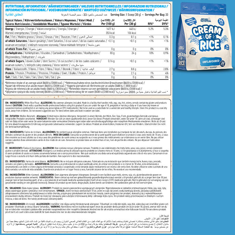 Applied Nutrition Cream of Rice - 1000 Grams / 33 Servings *DOOR CRASHER*