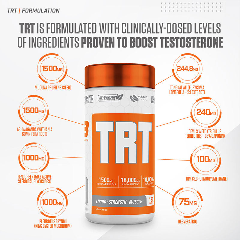 TRT is a natural testosterone booster, which athletes and bodybuilders often turn to for improved results. This product will help support athletic sports while improving overall quality of life.