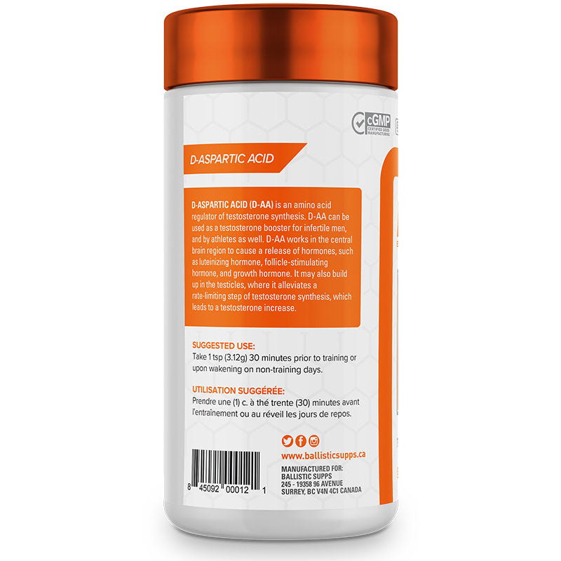 D-aspartic acid is one of two forms of the amino acid aspartic acid. Athletes use the benefits of D-AA as a testosterone booster to enhance athletic performance. Elevated testosterone levels can last up to a week and a half in healthy men, with testosterone levels returning to normal afterward. D-AA works in the central brain region to cause a release of hormones, such as luteinizing hormone, follicle-stimulating hormone, and growth hormone. It may also build up in the testicles, where it alleviates a rate-limiting step of testosterone synthesis, leading to a testosterone increase.