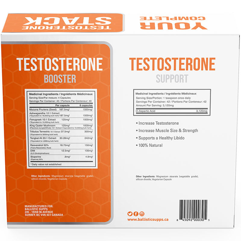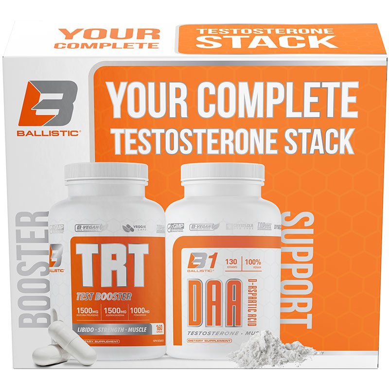 Ballistic Supps Testosterone Stack - TRT (160cp) + DAA (130g) - 160 Capsules + 140 Grams *HALLOWEEN DEAL*
