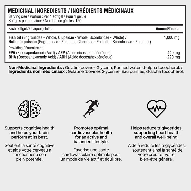 Our Omega-3 is proudly crafted in Canada using only oil from small fish like anchovies, sardines, and mackerel, ensuring optimal purity.