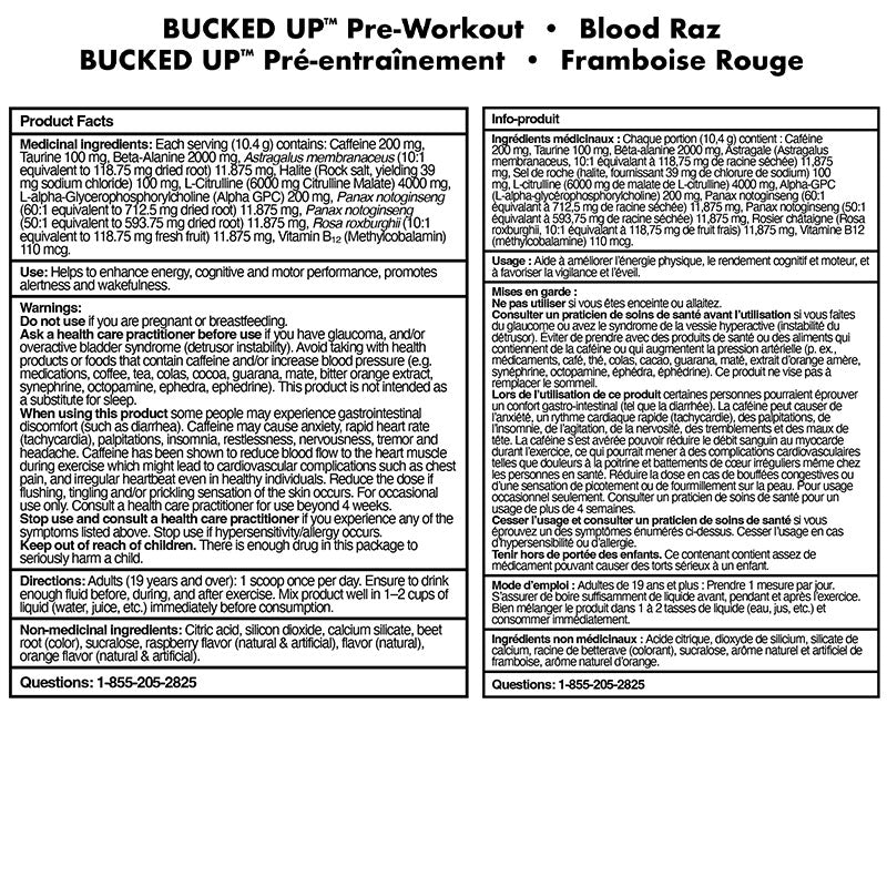 We don’t use proprietary blends. We have nothing to hide. You won’t find ineffective doses of any ingredients in Bucked Up® because we know that you don’t want to pay for a supplement that isn’t going to work. Effective for serious athletes, bodybuilders, and anyone else looking for pump, focus, energy, and growth, Bucked Up® is the pre-workout everyone can agree on.* Approximately 200mg caffeine per serving.
