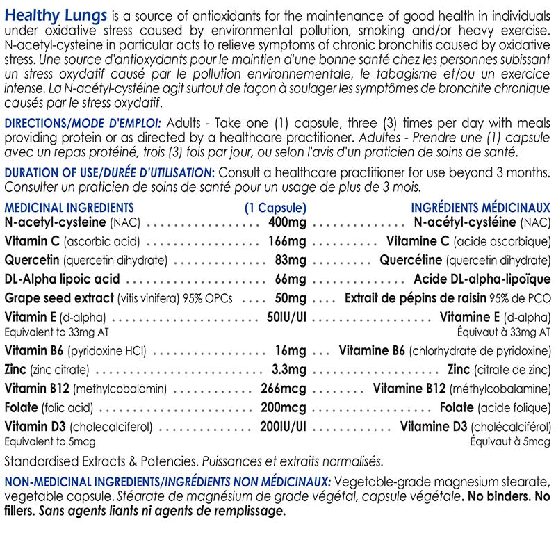 That’s the premise of CanPrev’s Healthy Lungs™, an advanced, multi-oxidant formula that goes straight to work helping to prevent and repair cellular damage caused by exposure to smoking, environmental pollution or even heavy exercise. It contains antioxidants that counteract these free radicals, and maintain good health.