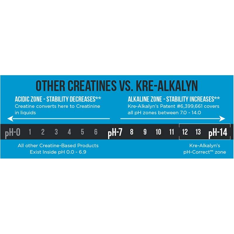Kre Alkalyn represents a major breakthrough in performance supplementation thanks to its multi-patented, pH-Correct creatine stabilization technology. Our scientist, Dr. Jeff Golini, discovered that “buffering” to pH-12 produced a stable creatine molecule. Kre Alkalyn is the ONLY creatine monohydrate product with a pH level of 12 because its molecules are synthesized with ‘buffering’ agents using a proprietary manufacturing process.