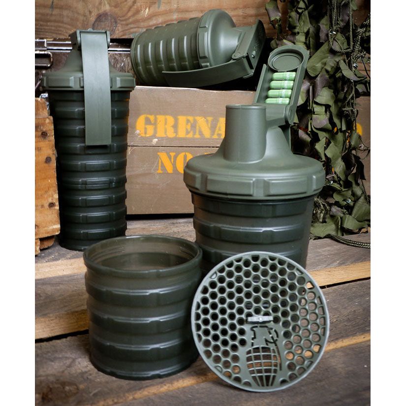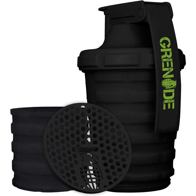 With its distinctive Grenade ® branding and patent pending design, it makes a statement! It has a removable storage compartment for powders which can fit a scoop and approx. 3 full servings of Grenade ® Hydra 6™ Protein and a convenient capsule storage section in the cap.