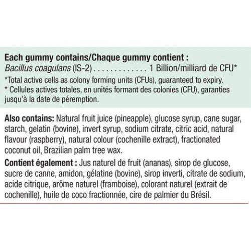 Probiotic Gummies are a delicious way to share your probiotics with the entire family. Delicious raspberry flavoured probiotic gummies provide 1 billion active cells to supports the maintenance of digestive health.