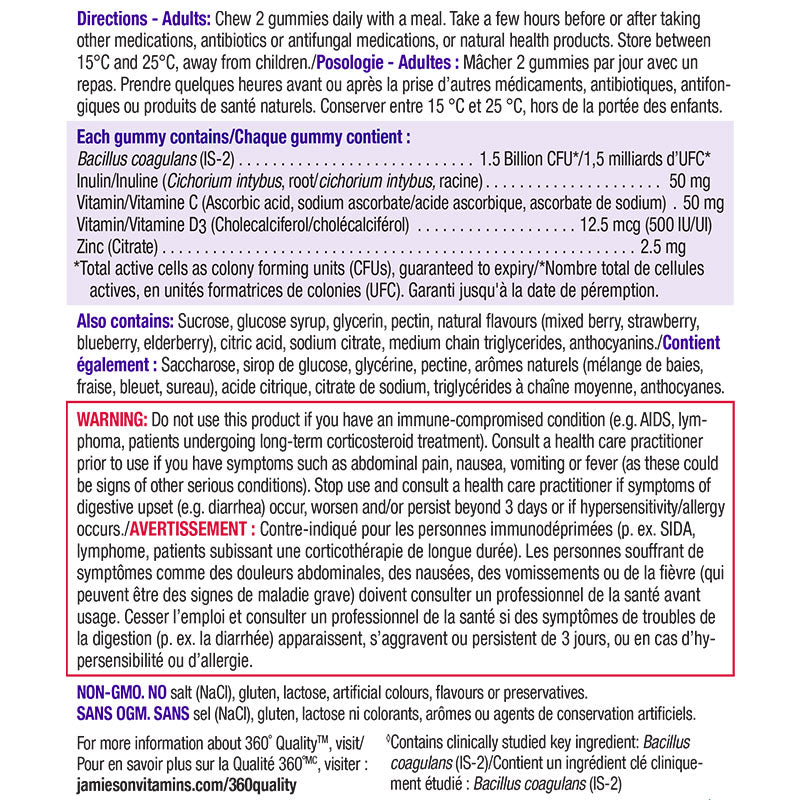 Jamieson Probiotic Immune Support - 70 Gummies - Elderberry
