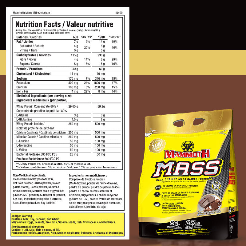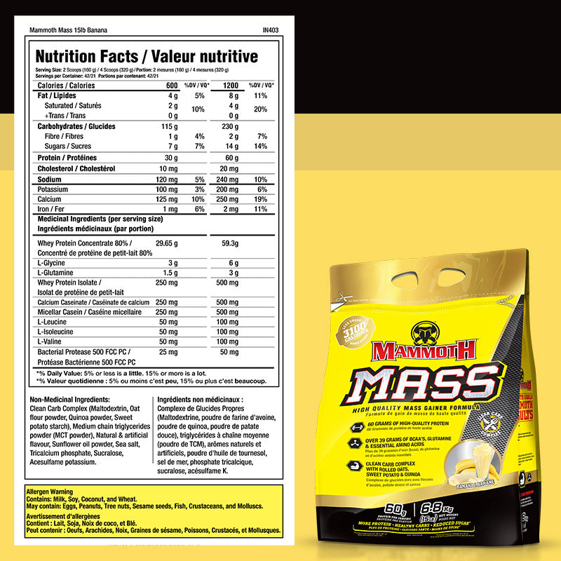 Blend four scoops (320 g) with water or milk. Use it in the morning, after a workout, between meals, or as a meal replacement. For hard gainers, follow the Mammoth 3100 Plan (twice daily with 2% milk).