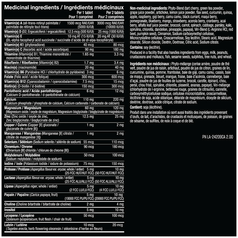 High potency vitamins, minerals including electrolytes, phytonutrients, botanical extracts, antioxidants, enzymes, berries & greens, lipotropic factors โ ALL delivered in easy to swallow tablets.
