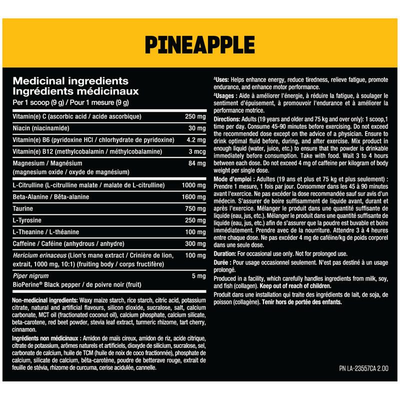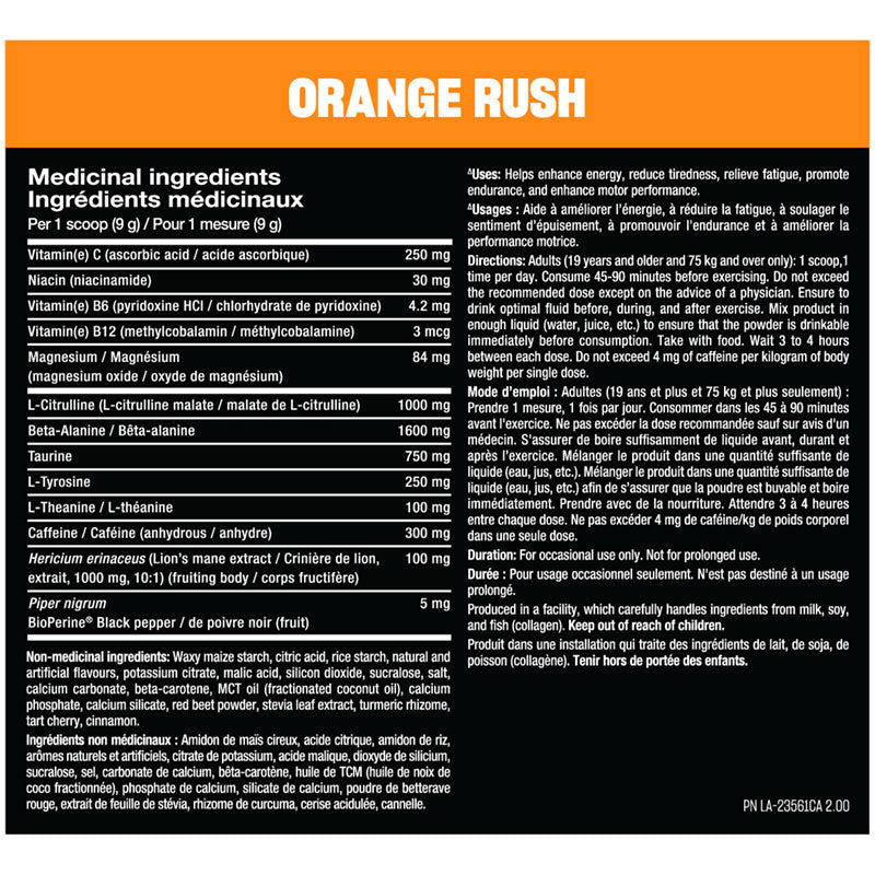 As a food supplement for healthy adults performing high intensity exercise who are experienced pre-workout supplement users, add 1/2 to 1 level serving to 250 ml (~8 fl oz) of cold water, shake 5–10 seconds, and slam it back 30 minutes prior to workouts. First time users should try 1/4–1/2 serving in 250 ml of water first to assess tolerance. Read and understand the entire warning before using. Do not consume within 4 hours prior to bedtime. Never exceed 2 servings per 24 hours.