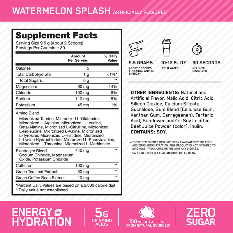 Optimum Nutrition Essential Amino Energy + Hydration - 285 Grams, 30 Servings