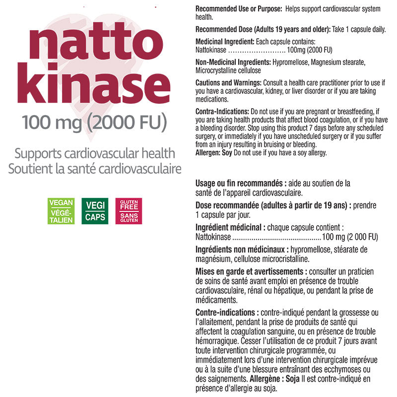 Prairie Naturals Nattokinase is made from a naturally derived enzyme from fermented soybeans that plays a vital role in supporting cardiovascular health. Nattokinase helps enhance your body’s natural ability to break down fibrin, a protein that contributes to blood clotting, reducing the risk of cardiovascular issues such as strokes and heart attacks. This enzyme promotes healthy blood circulation and helps maintain optimal blood pressure levels.