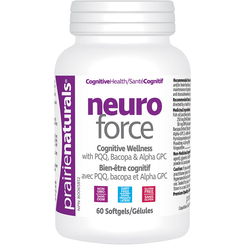 All Neuro-Force™ ingredients are supported by scientific evidence and approved by Health Canada including Docosahexanoic acid (DHA), Vinpocetine, Pyrroloquinoline Quinone (PQQ), Bacopa Monnieri Extract and Alpha GPC (L-alpha-glycerylphosphorylcholine).