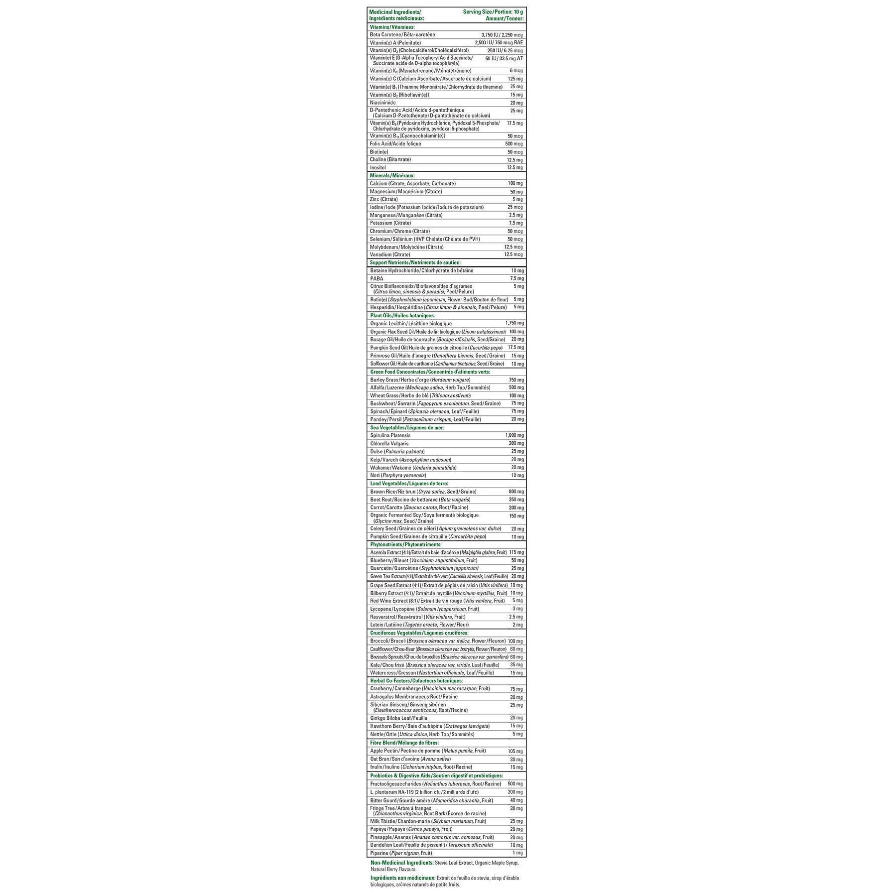A single scoop provides the nutritional density of 6-8 servings of fresh fruit or vegetables, along with over 30 additional vitamins, minerals and support nutrients.