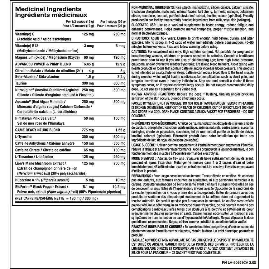 Caffeine is an important component to bring your training to the next level! It boosts the energy levels for performance and is thermogenic, which means you can burn more calories during your workout. There is 180mg of caffeine in a half scoop and 360mg in 1 scoop (26g).