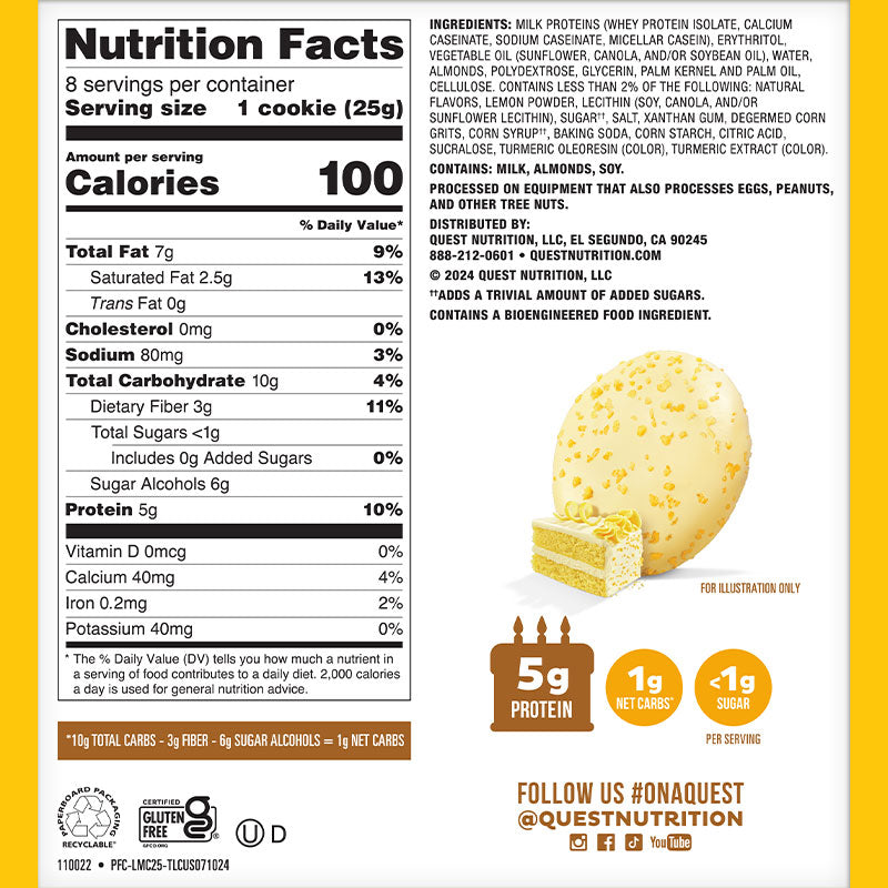 This all new decadent treat from Quest Nutrition features a soft baked cookie covered in frosting with sprinkles.