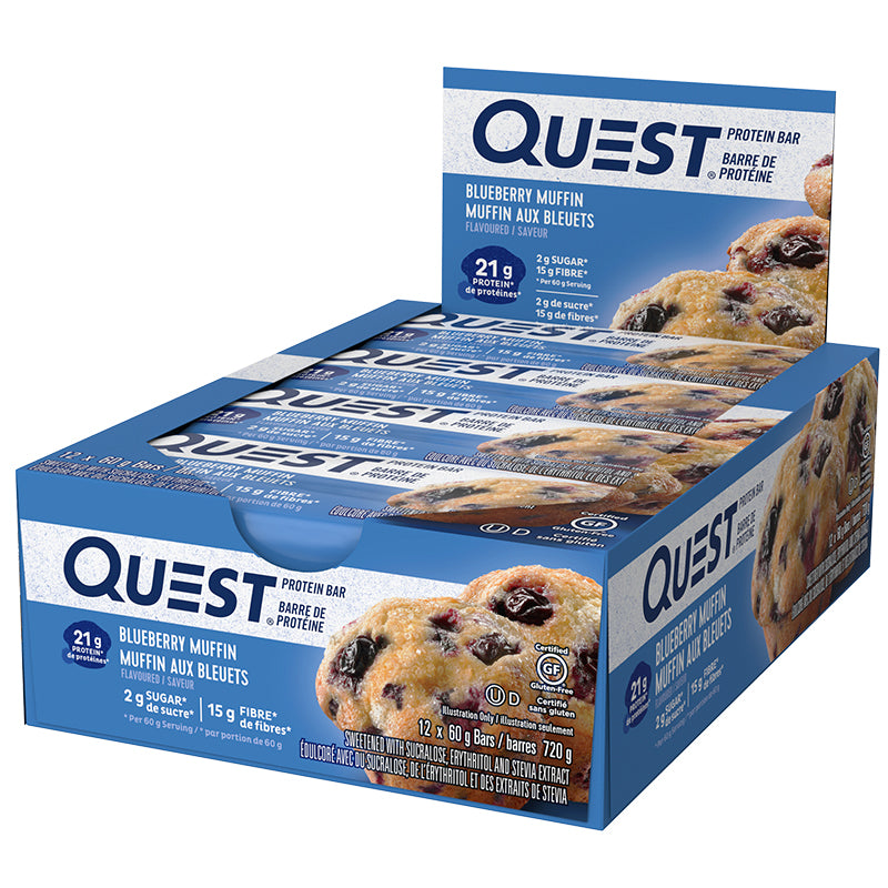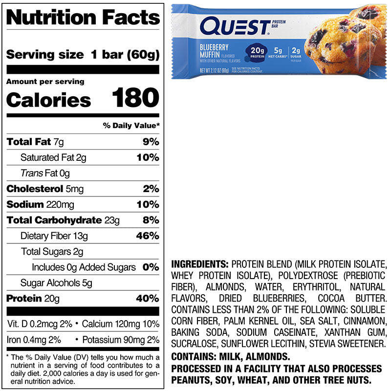 The Quest Blueberry Muffin Protein Bar lets you take a bite out of your urges, complete with chewy cobbler chunks and real dried blueberries.