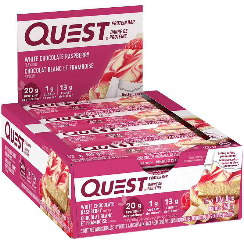 The Quest White Chocolate Raspberry Protein Bar lets you take a bite out of your urges, complete with chewy cobbler chunks and real raspberries.