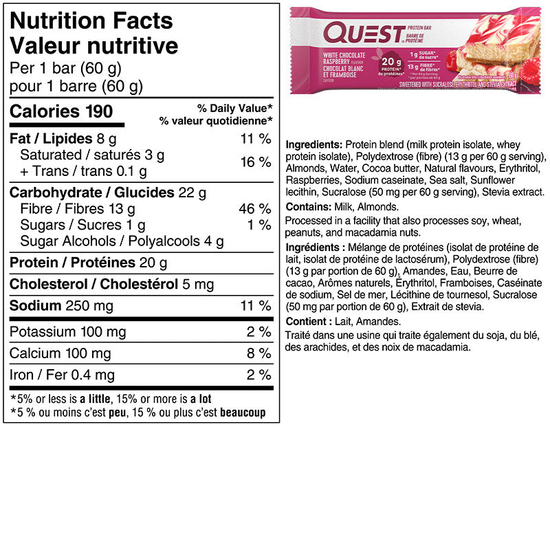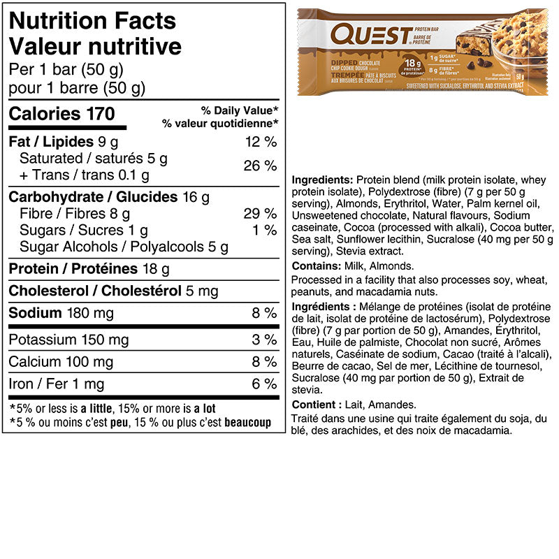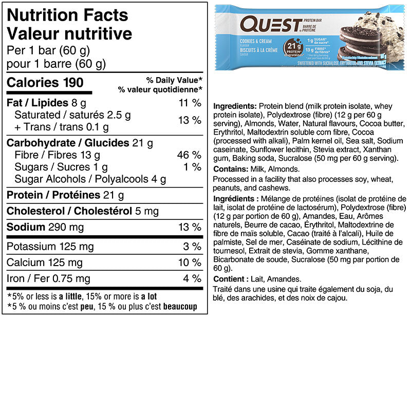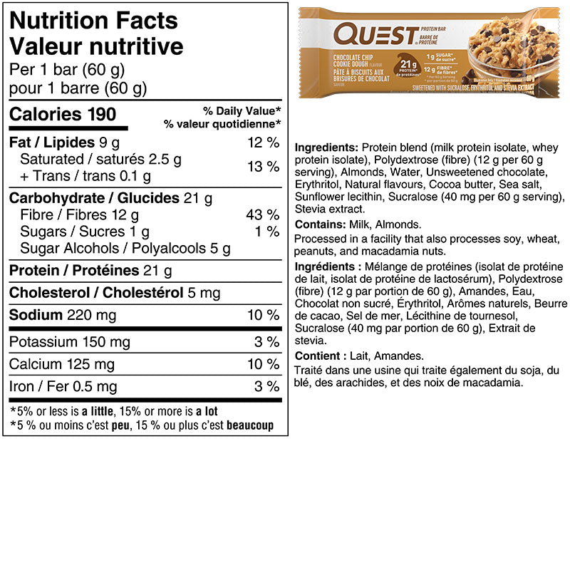 With real cookie crumbles and delicious white chocolate flavored chips, America's favorite flavor can now be your favorite Quest Protein Bar!
