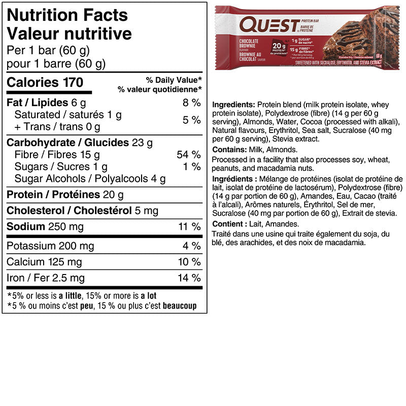 Quest Bars are the perfect nutrition bar for anyone looking to get top quality protein while dropping some carbs from their diet. They're as delicious and convenient as a candy bar, while maintaining all of the nutrition of a carefully prepared meal that's packed with fiber to make you feel full and to help with digestion and weight loss.