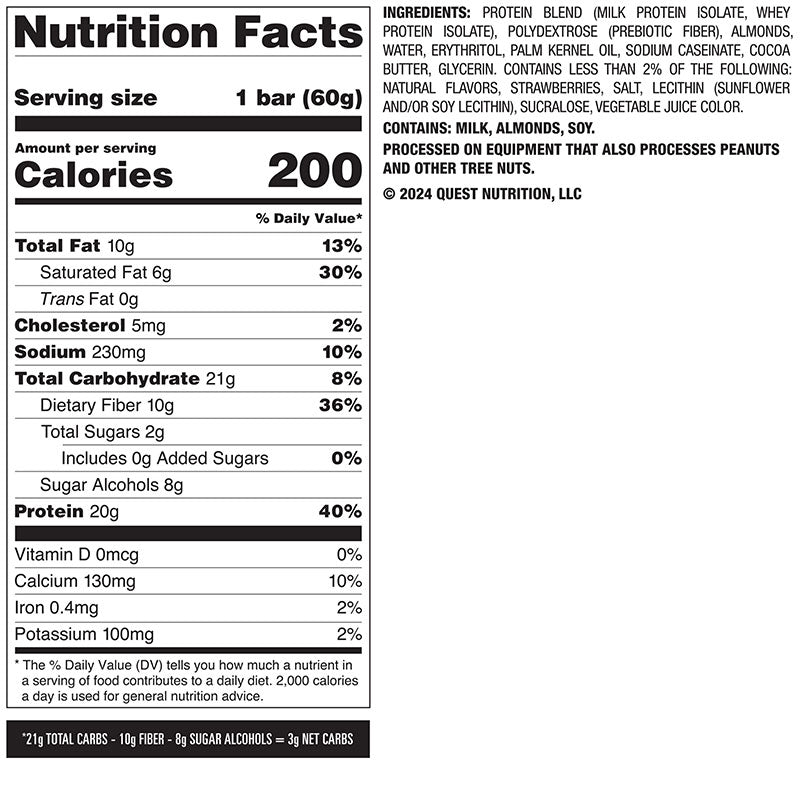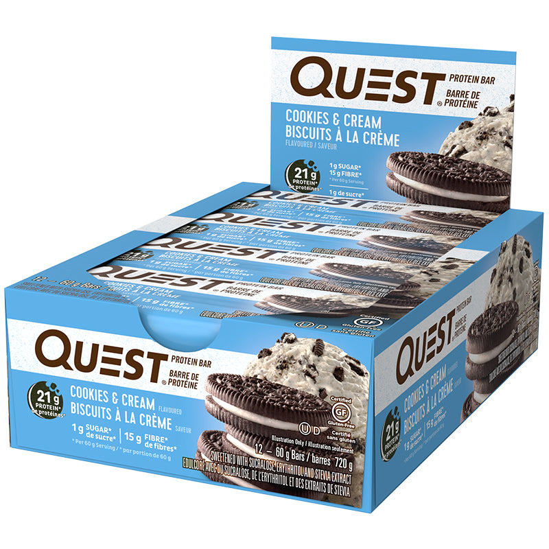 America's Favorite Protein Bar leads the charge in Quest's mission to end metabolic disease. Every delicious Quest Bar flavor has 20-21 grams of protein and plenty of fiber without a lot of unnecessary ingredients or extra carbs. All Quest Bars are gluten and soy free, and contain no added sugar. Quest Bars are helping us inspire a global #CheatClean revolution, reframing the conversation around nutrition. This is the bar that promises food can taste as good as it is good for you. With Quest Bars, you can eat toward your goals and love every bite along the way