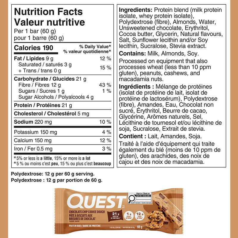 With real cookie crumbles and delicious white chocolate flavored chips, America's favorite flavor can now be your favorite Quest Protein Bar!