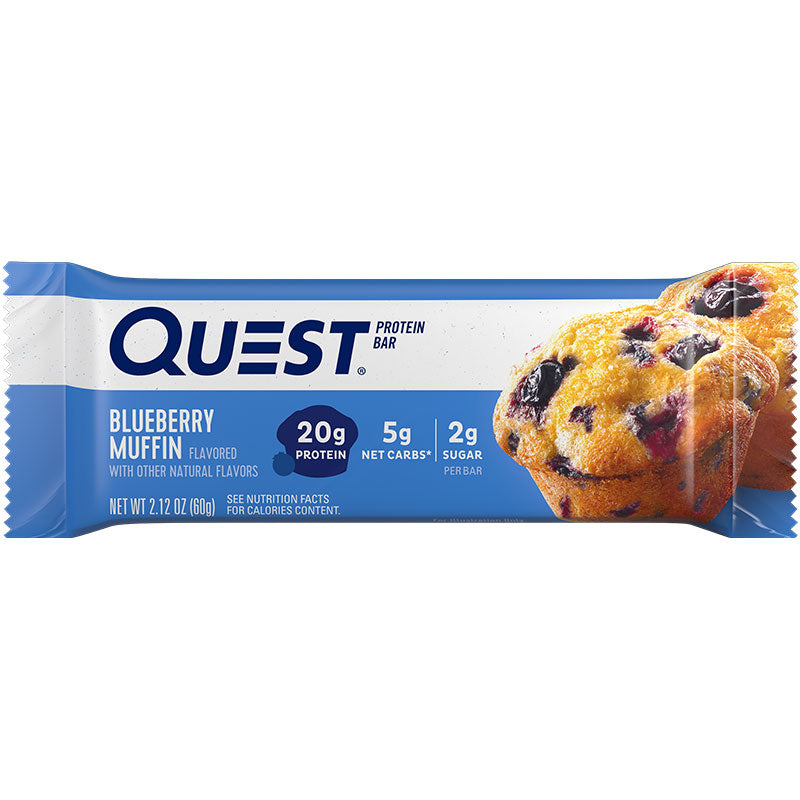 The Quest Blueberry Muffin Protein Bar lets you take a bite out of your urges, complete with chewy cobbler chunks and real dried blueberries.