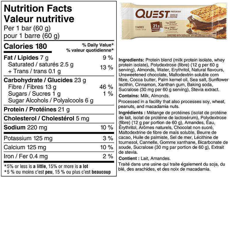 Every delicious Quest Bar flavor has 17 grams of protein and plenty of fiber without a lot of unnecessary ingredients or extra carbs. All Quest Bars are gluten and soy free, and contain no added sugar.
