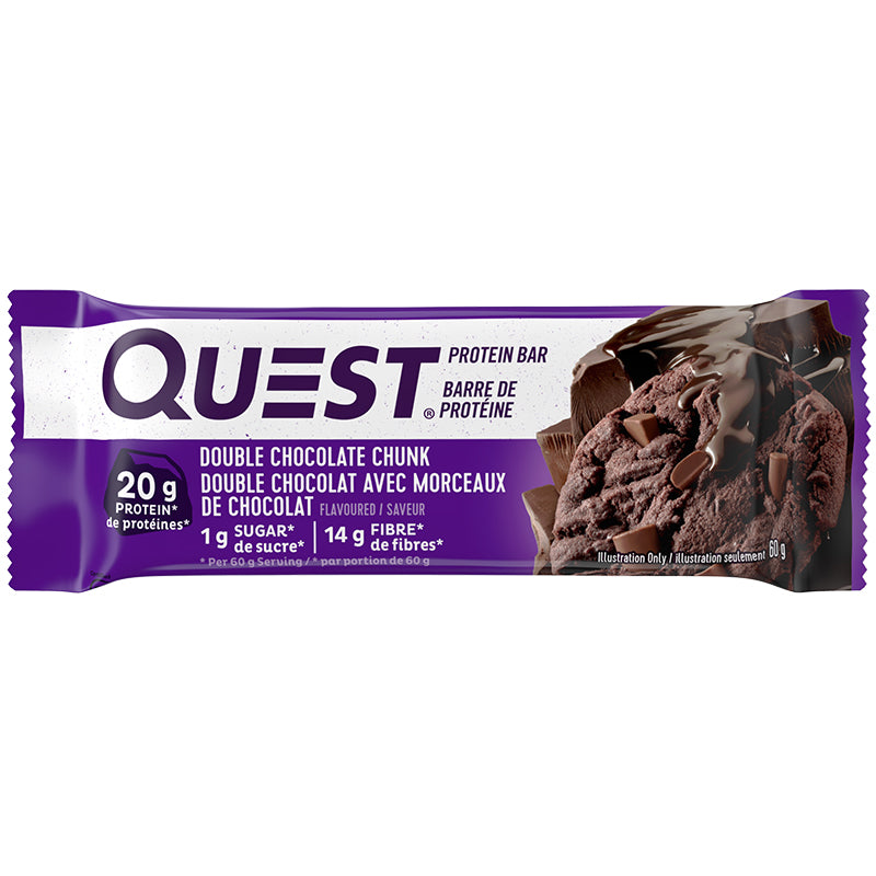 Satisfy your chocolate cravings with the delectable Quest Double Chocolate Chunk Protein Bar.