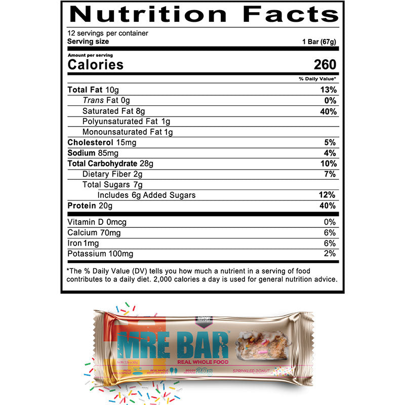 Just when you didn't think MRE could get any better we upped our game with MRE Bar. This real food bar will change your outlook on bars forever as the days of heavy sugar alcohols added to your bars are long gone.