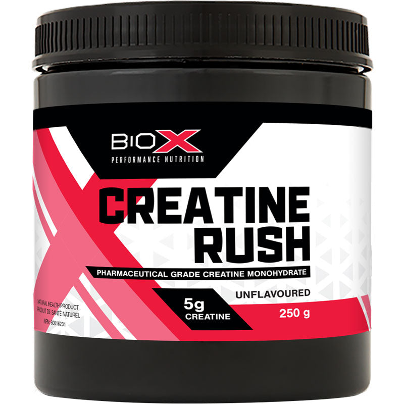 By supplementing with BioX Creatine Rush, your body’s muscles have an increased supply of creatine available and therefore a substantially higher regeneration of ATP will occur allowing an athlete to train for a longer period of time before muscular fatigue sets in.