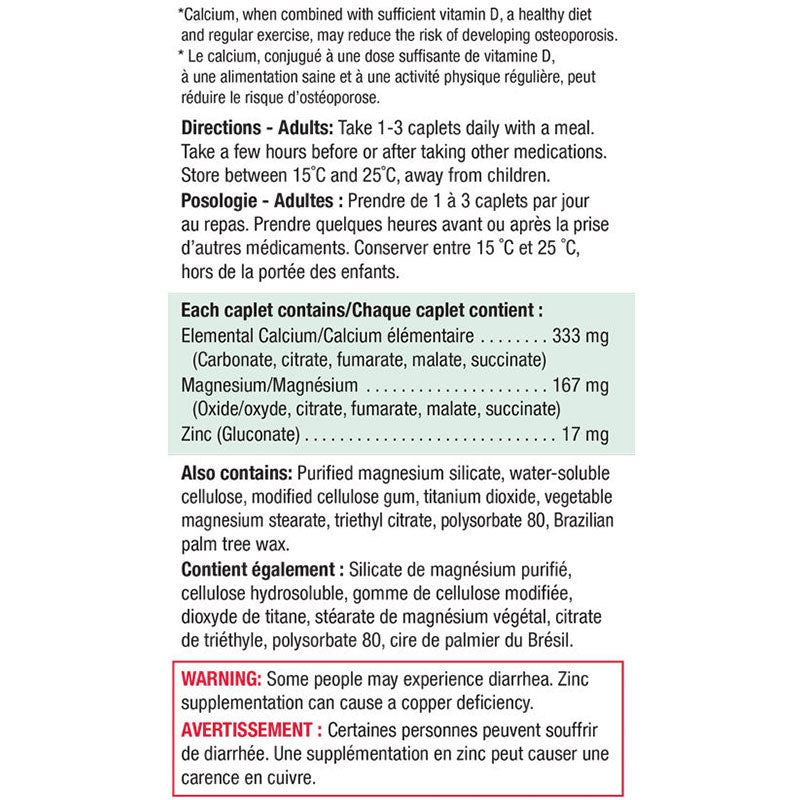 Jamieson Calcium Magnesium + Zinc is enriched with zinc for added mineral support, this formula combines calcium and magnesium at the optimal 2:1 ratio to support strong bones and healthy muscle function, and may help to reduce the risk of developing osteoporosis.