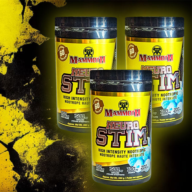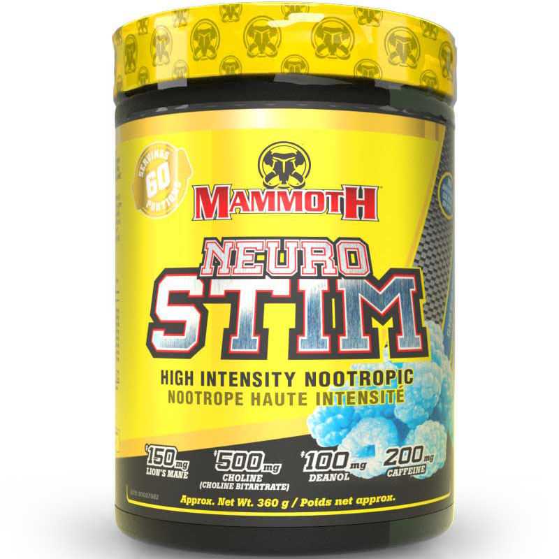 Mammoth NEURO STIM is a convenient, powerful and potent premium dosed Nootropic (Brain function support) drink mix. NEURO STIM is designed to keep you energized with laser focus and concentration to help you perform better in everything you do.