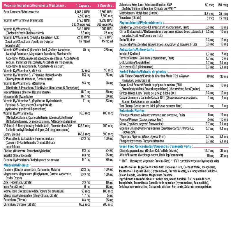 - Formulated to provide 100% of the daily vitamin needs of adult women as defined by Health Canada