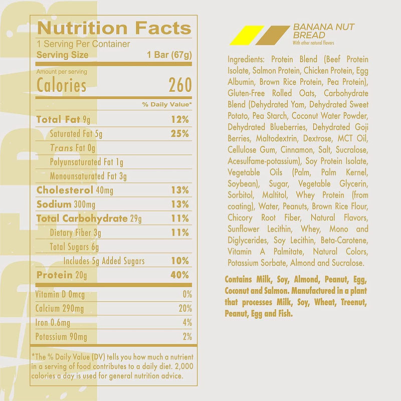 When eating a meal replacement, you should be eating real food. Just like MRE powder, MRE Bar is made from real food! A lot of bars have artificial main ingredients – who wants to eat ingredients that you can’t even pronounce the name of? Unlike the rest of the bars on the shelf, MRE Bar has ingredients like oats, salmon, chicken, eggs, brown rice and sweet potato. These ingredients give the MRE bar an amazing taste, unmatched flavor and the nutrition that gives you sustained energy throughout the day.